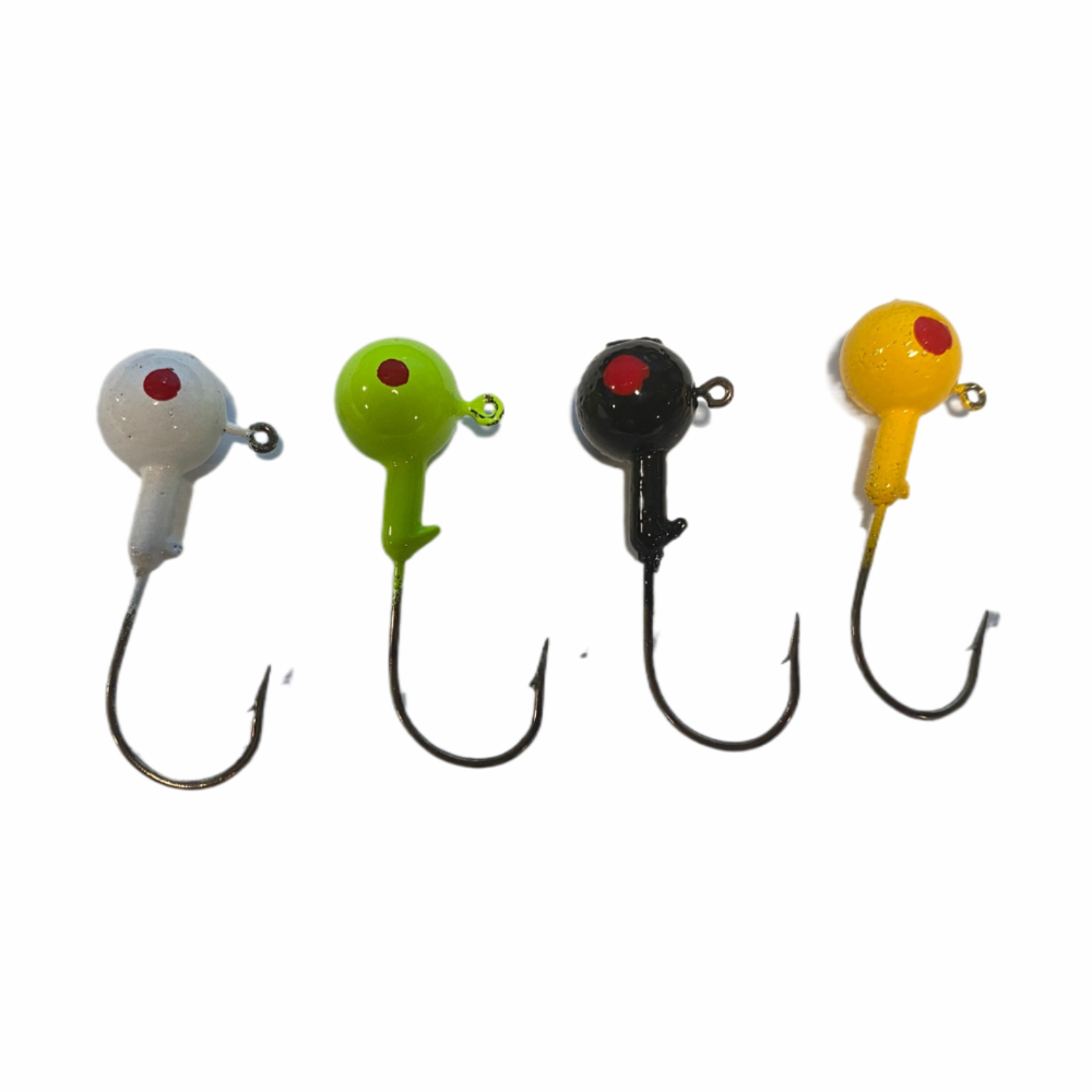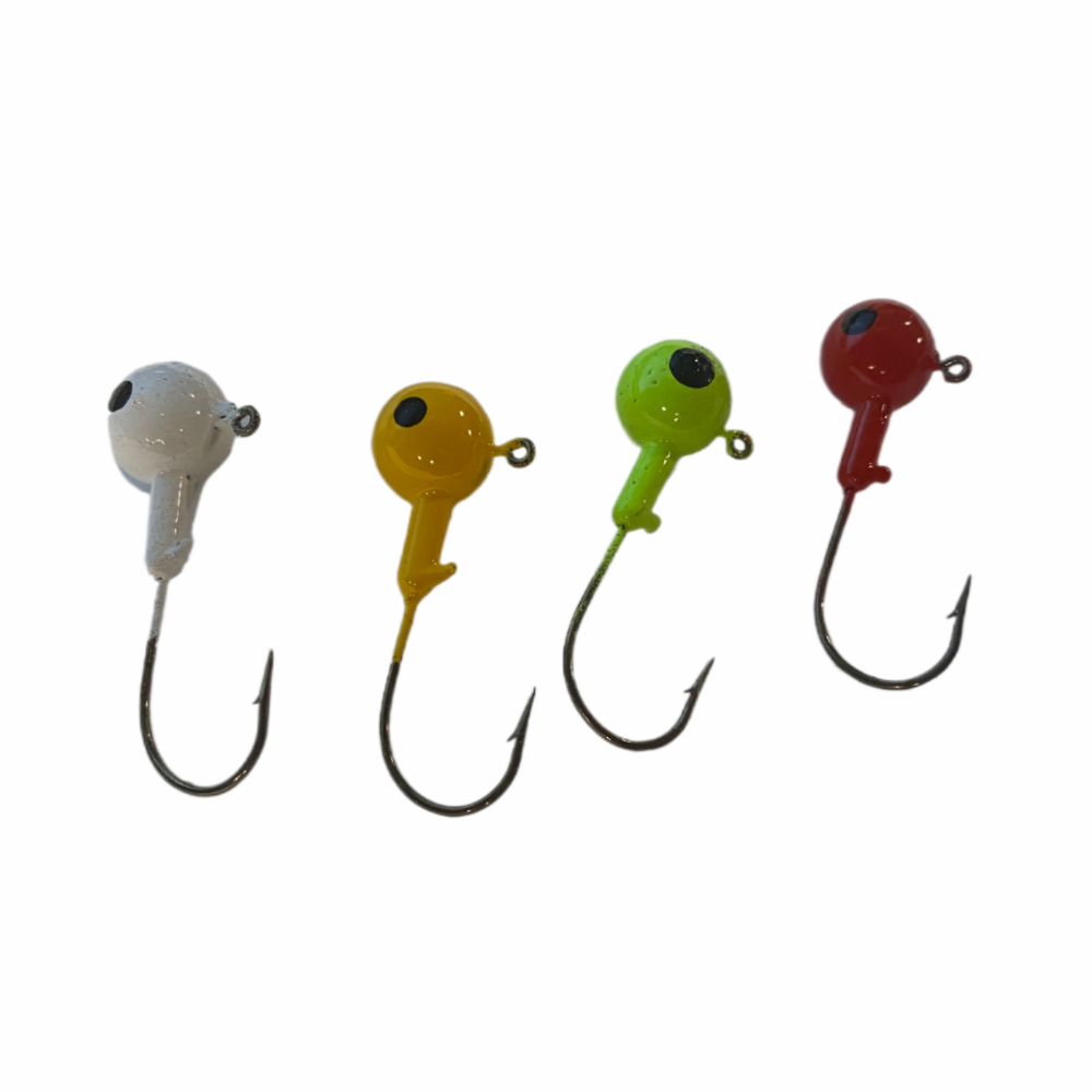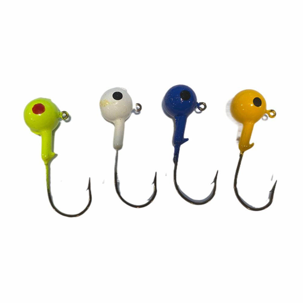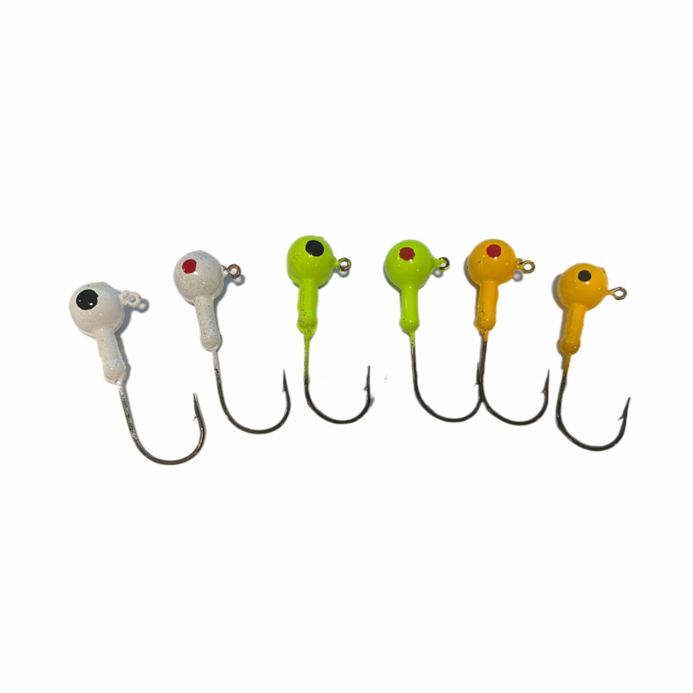 These Jigs are hand poured and painted with an eagle claw hook. These style of jigs are best for adding large bait or plastics and are sure to catch most fish species. They come in a variety of sizes to make sure you have the best head for the job.