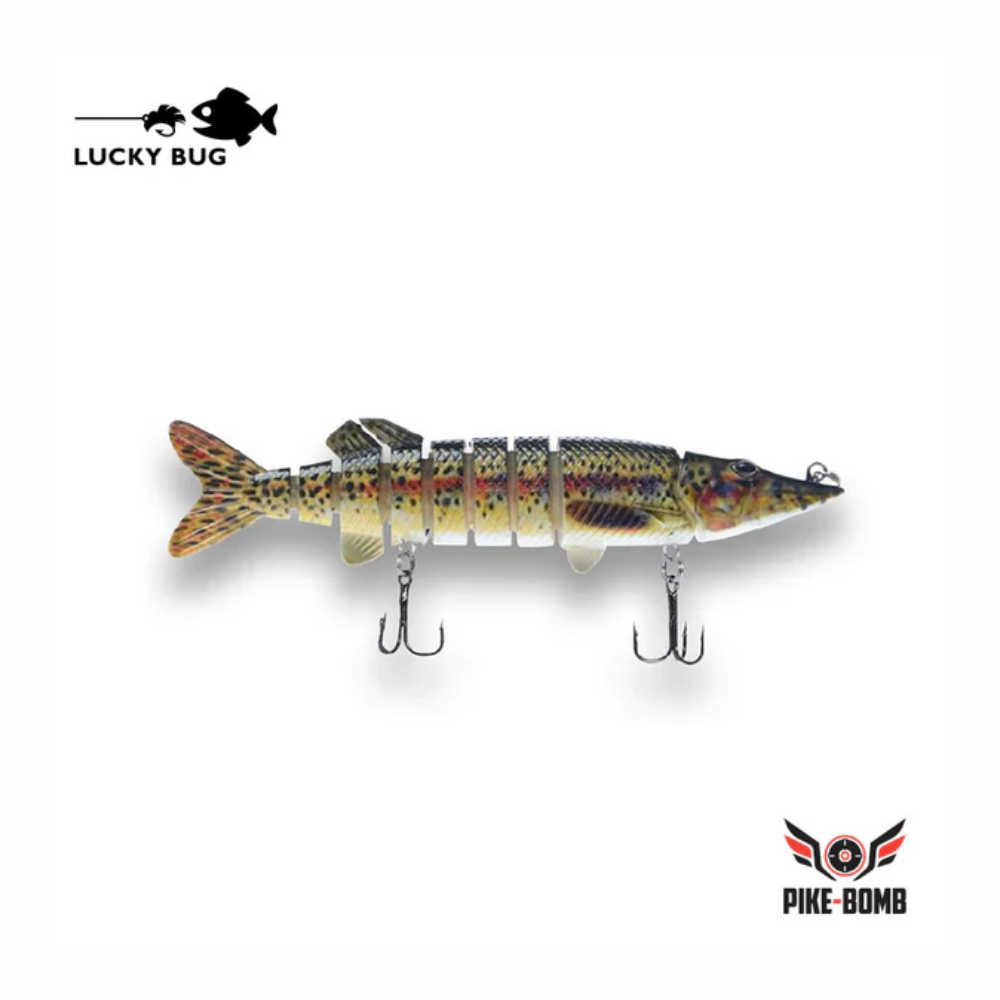 This incredibly realistic lure, with 8 articulating sections, features a weighted swivel head and produces an incredibly life-like action underwater. Whether you are casting or trolling, this swimbait will blow your mind with it’s amazing underwater action. It drives all predatory fish wild, including Pike, Musky, Bass, Trout, Lakers & Walleye!